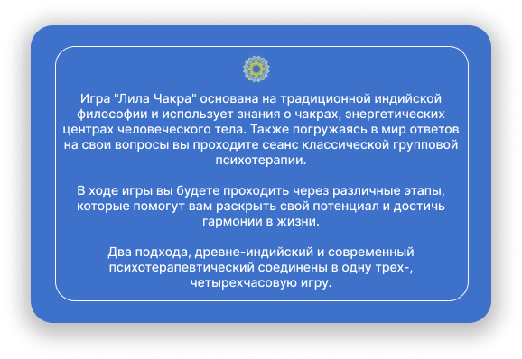 ДОБРО ПОЖАЛОВАТЬ В УВЛЕКАТЕЛЬНЫЙ МИР ТРАНСФОРМАЦИОННОЙ ИГРЫ "ЛИЛА ЧАКРА"!